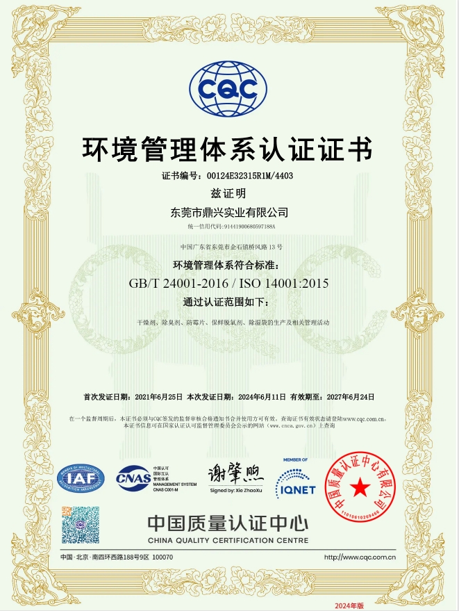 硅膠干燥劑ROHS證書