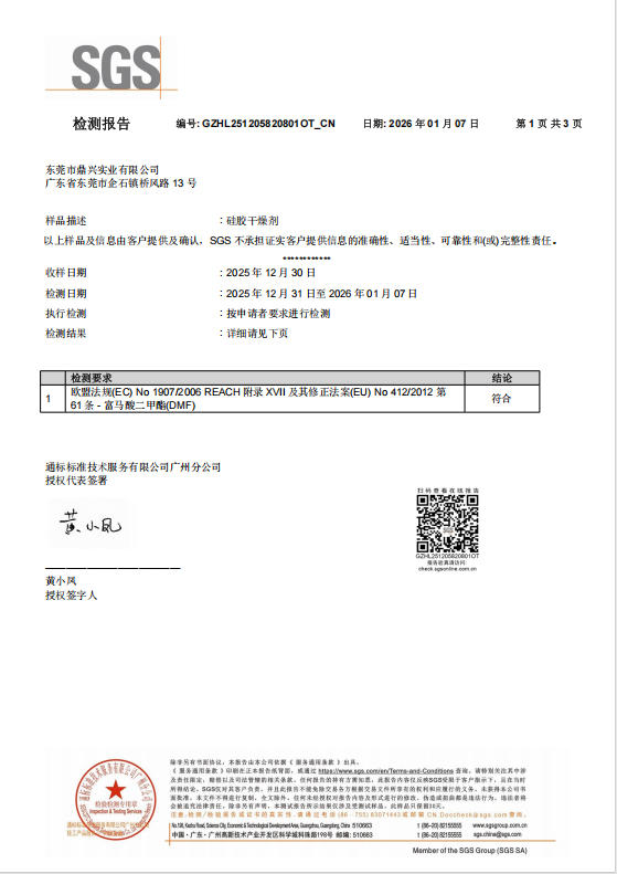 硅膠干燥劑REACH證書